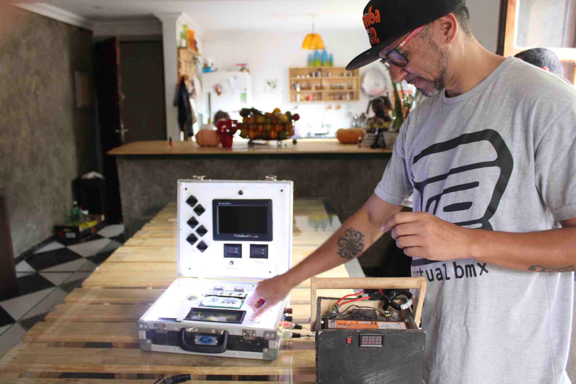 Fábio Miranda de Moura demonstrates how powerful and financially viable solar energy can be using his “Solar Suitcase,” which charges cellphones, records and plays video and can power a saw.