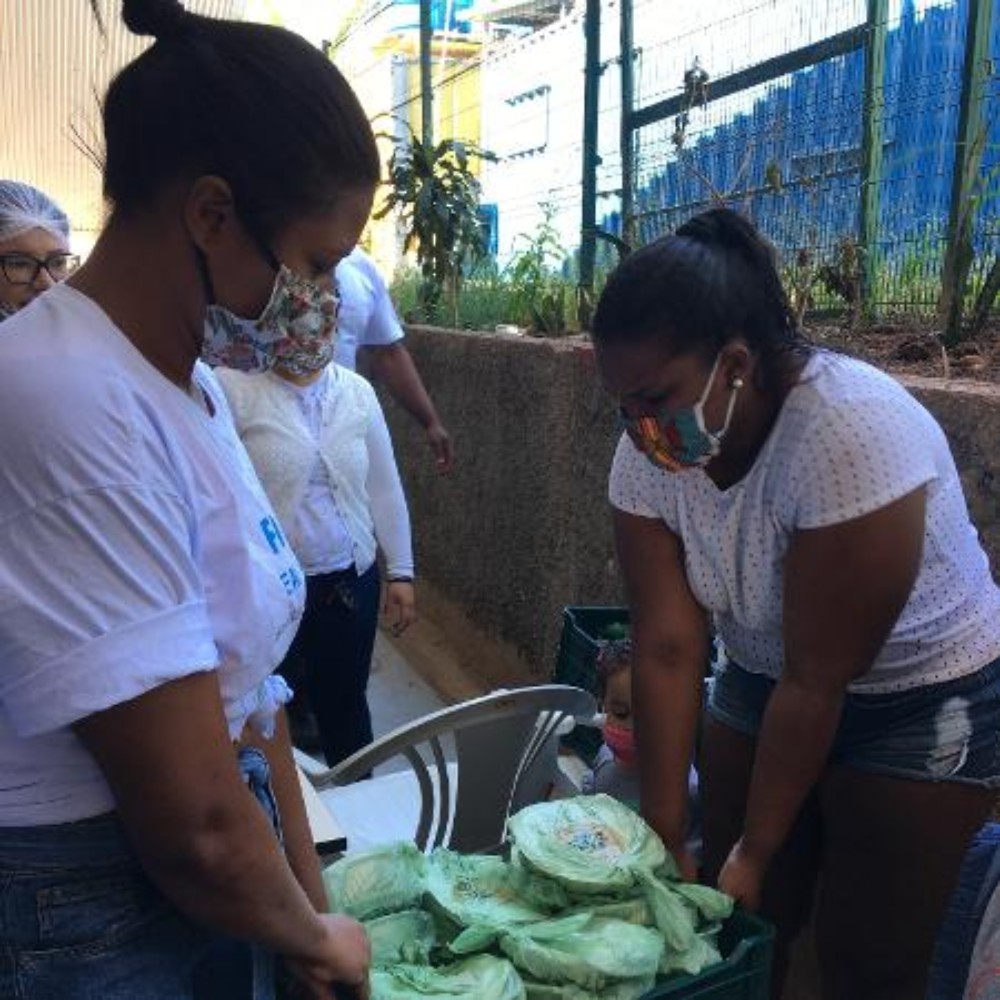 Women organize foodstuffs in Paraisópolis to provide support during the pandemic. Photo – Gloria Maria, UOL – Edited