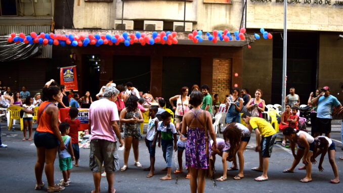 Occupied in 2007 after being abandoned for more than 15 years, the Manoel Congo building–previously a property of the National Institute of Social Security (INSS)–now houses 42 families, or around 127 people. After six difficult years lobbying for government recognition, facing potential eviction and patchy utility services, the residents of Manoel Congo scored a rare victory when the state and federal governments pledged $1.1 million (R$2.9 million) to renovate the building and improve living conditions. The street party on Sunday was not only a celebration of the occupation’s tenacity but also its success in gaining access to these resources.