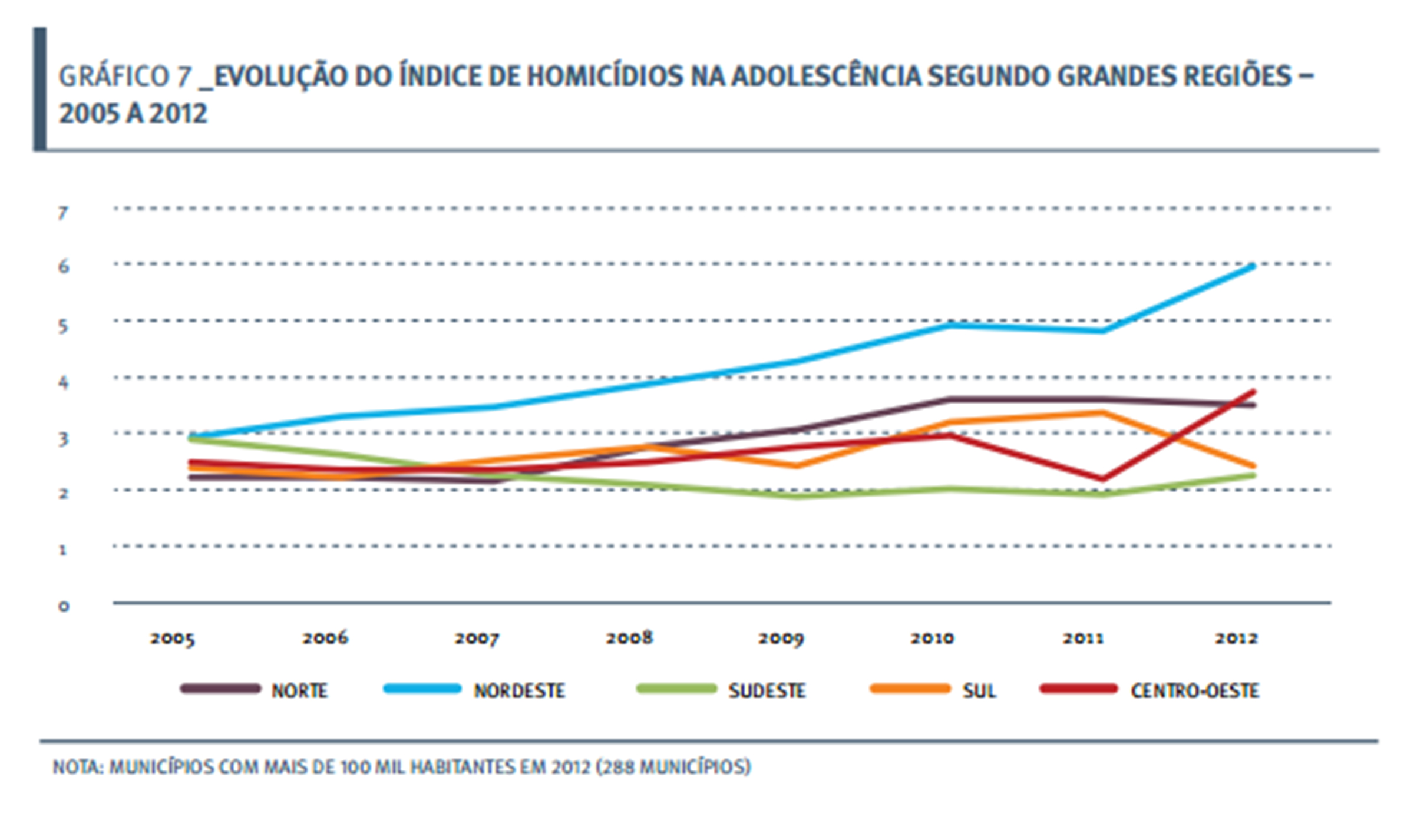The report was presented by the Federal Human Rights Secretariat, UNICEF, Observatório de Favelas and the State University of Rio’s Violence Laboratory with the objective of “systemic monitoring of homicide numbers among the young population, so as to contribute to policies to combat violence.” It covered data from the period 2005-2012.