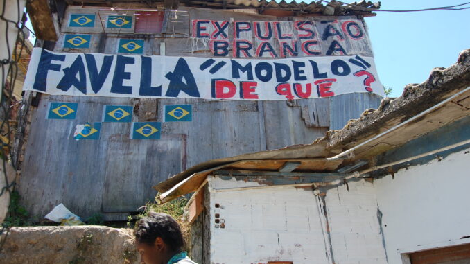 He writes: “By the arrival of the Olympics in 2016, I don’t know if we will still be here on the hill of Santa Marta. Today, more than ever, we have a very high cost of living. Our electricity bill comes with unexpected costs…Subtly, they are sanitizing the favela, without all the residents realizing.”
