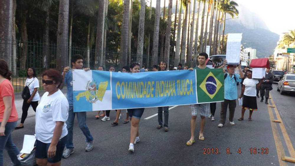 The new president makes clear that the Association will now become a tool for residents to fight against eviction, which have long been threatening the community and have intensified since 2012. Located at the base of Morro do Borel in the middle-class Tijuca neighborhood, Indiana is considered an area of risk by the City due to its location next to a river. The City wants to relocate the residents to a Minha Casa Minha Vida public housing project in Triagem, 7kmaway. Before 2012 six houses were demolished and 110 families removed, but a court injunction prevented further actions on the grounds that the City failed to provide sufficient justification for removing the community.