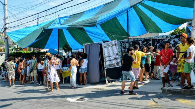The theme for this year’s event was “re-invention,” a celebration of the creativity, resourcefulness and sustainable solutions born of the challenges and potentials within favela communities throughout Rio de Janeiro. The event showcases the various cultural and artistic expressions within favelas that demonstrate resistance and transformation, and also hopes to serve as a crossroads for collaboration and exchange for youth, artists and communities. Alan Brum Pinheiro is founder of the Instituto Raízes em Movimento, and describes the inspiration for this year’s theme: