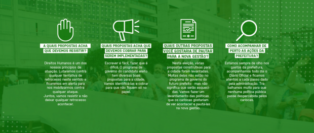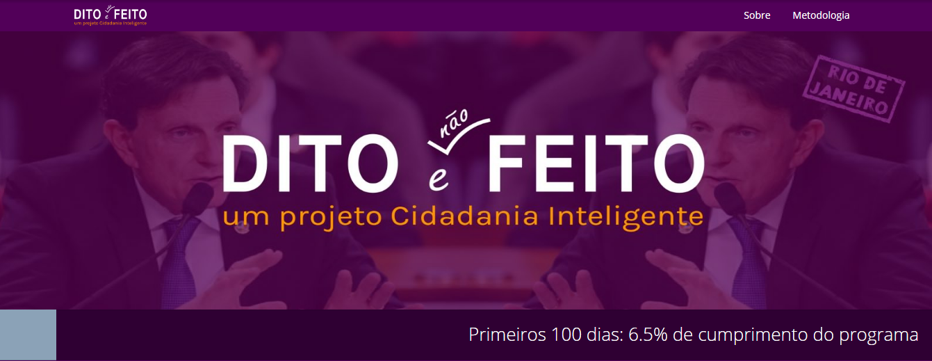 The Intelligent Citizenship Foundation is a Chilean non-governmental organization that recently expanded to Brazil, and aims to monitor public administrations, promote information transparency and civic participation through technology, and influence public policy. The project Said and Done is its first project in Brazil and will periodically evaluate whether Rio’s municipal government fulfills its campaign promises in various categories, including social justice and human rights, urban mobility, and municipal security and protection.