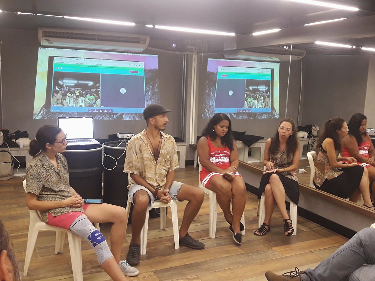 The evening’s panelists attested to the power of live-streaming. Gizele Martins, from the Maré 0800 collective and numerous community journalism initiatives, found that live-streaming from abroad helped her dramatically increase her audience. “I spent two weeks in Palestine, where the removals are really similar… where there are several similarities with what we see here in the favelas.” Sharing video live from the Middle East and offering her perspective as a favela resident gained her international viewers as well as increased interest from Rio favelas outside of her native Complexo da Maré.