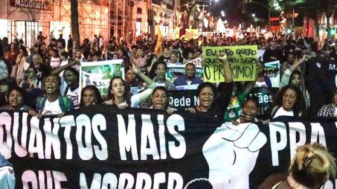 On the night of Thursday, July 12, protesters flooded downtown Rio, marching in remembrance of city councilor Marielle Franco and victims of police violence throughout Rio de Janeiro.
