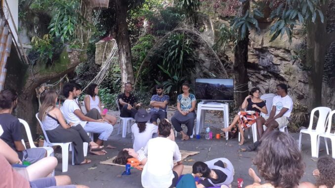 On Saturday, January 25, activists from Rio de Janeiro’s peripheries united with local academics and concerned citizens for a roundtable discussion on environmental solutions. Titled “How Do We Postpone the End of the World with Environmental Education?” (based on the title of Brazilian indigenous leader Ailton Krenak’s 2018 book Ideias para Adiar o Fim do Mundo), the afternoon’s seminar was part of the annual Escola Mateira seminar, a three-day environmental education workshop organized by the Moleque Mateiro Institute.