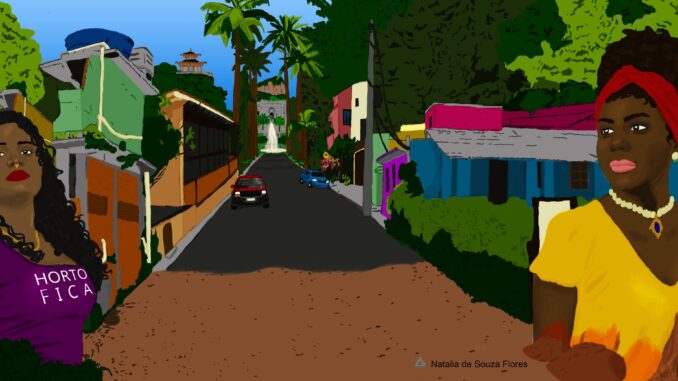 Located in the Jardim Botânico (Botanical Gardens) neighborhood, in Rio’s upscale South Zone, the Horto community guards an ancestral history. Its development was made possible thanks to the resistance of a people who arrived in Brazil from various countries in Africa as enslaved persons, and who, over the years, have established themselves thanks to the bravery of the women and men that survived the horrors of slavery and contributed their knowledge and cultural heritage. It is impossible to talk about Horto without remembering the mills that occupied this land in the colonial period, and the enslaved labor that developed it. Thus, even today, African ancestry evokes a resistance that necessarily involves gender and race and, therefore, makes up the complex history of how the territory came to be.