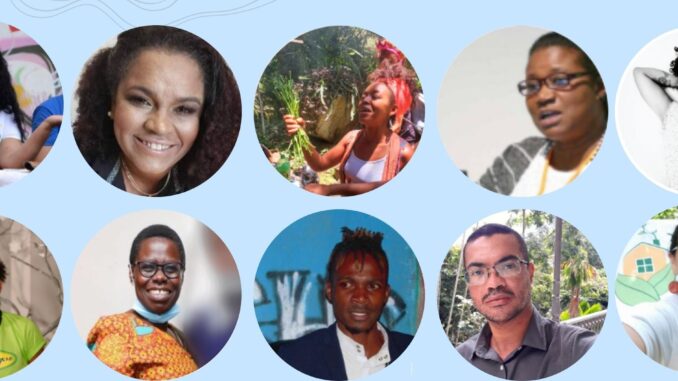 The session’s facilitator was Lidiane Santos, from the community organization Alfazendo, based in the favela of City of God in Rio de Janeiro. Participating in the conversation were: Brian Otieno, also known by his artistic name of Stoneface Bombaa, member of the Mathare Social Justice Centre in Kenya; Jane Anyango, Kenyan activist and founder of the Polycom Development Project; Sharon De La Cruz, director of sustainability at The Point CDC, in the Bronx, New York; Iara Oliveira, founder and coordinator of Alfazendo; Prince Nosa and Grace Timi, from Chicoco Radio, in Port Harcourt, Nigeria; Rose Molokoane, coordinator of the South African Federation of the Urban Poor (FEDUP) and member of the Management Committee of Slum Dwellers International (SDI); and Ana Santos, educator from the Center for Multicultural Education (CEM) in the favelas of Complexo da Penha, Rio de Janeiro.