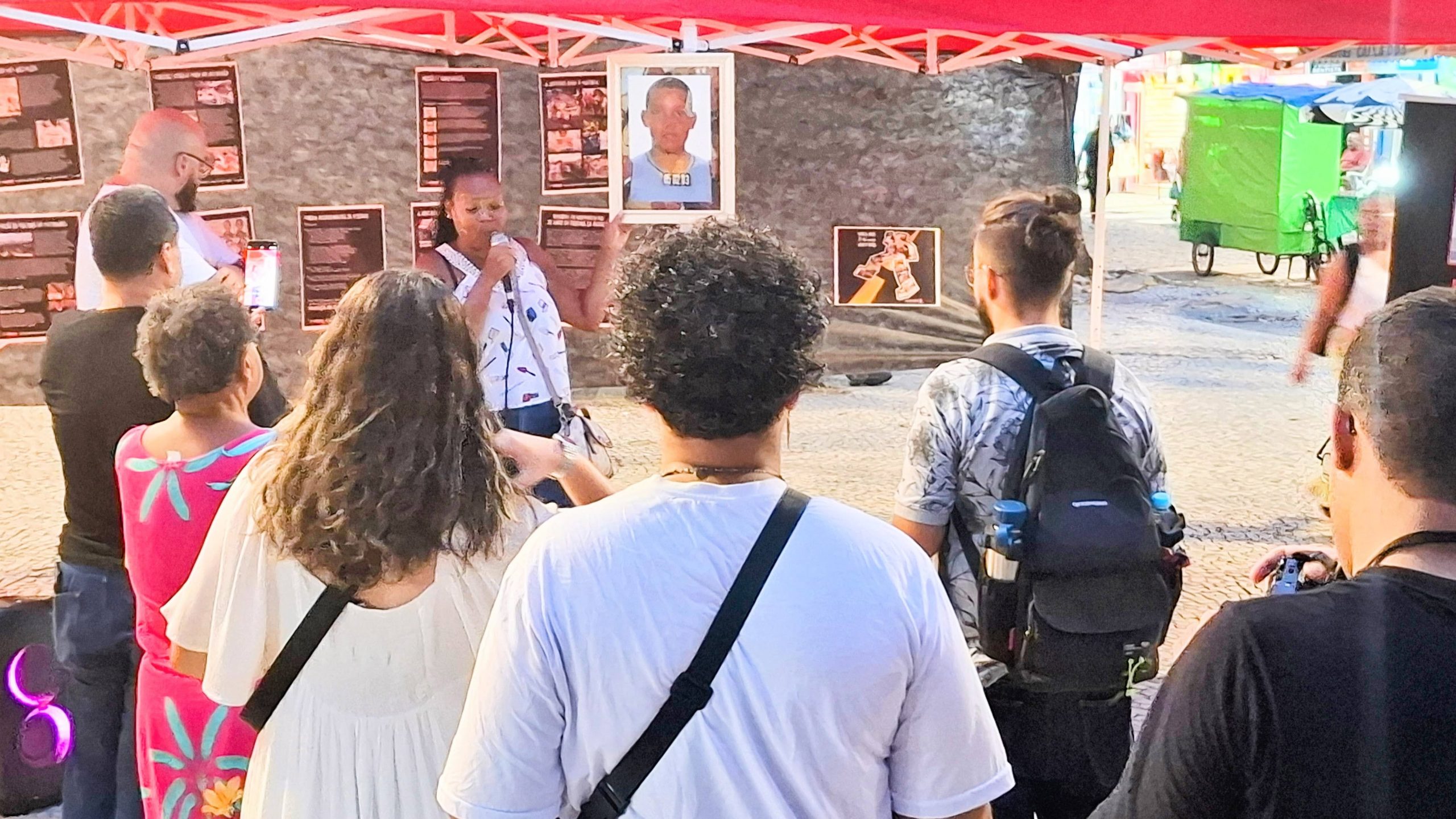 At all public events attended by the Network of Mothers and Family Members of State Violence Victims in the Baixada Fluminense, a banner shows the faces of victims of this violence. Those who follow the network’s work closely may notice that the banner has been frequently resized. At first, it featured photos of the 29 victims of the Baixada Massacre. Over the years, other images were added, including the fatal victims of many other instances of police brutality. In its most recent iteration, the yellow-background banner displays the faces of 50 people—a number that continues to grow due to ongoing State violence.
