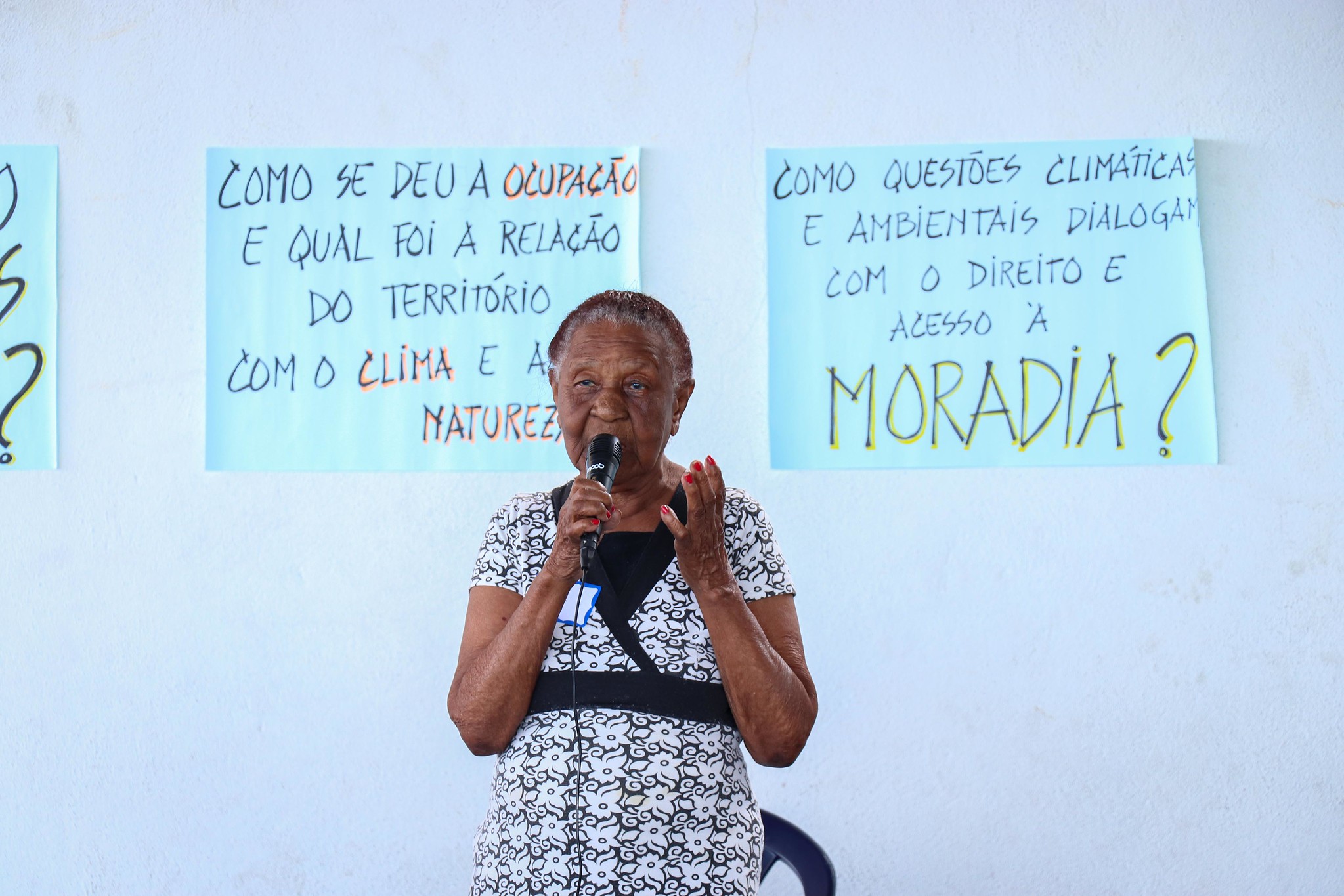 “When I came here, there were just shacks, no brick and mortar homes. There was no electricity, no paved streets, no sewerage. In short, to get around, we had to lay down wooden boards. We had to leave the house carrying our bags and shoes in our hands [so they wouldn’t get dirty in the mud].” — Izanete Bernardo da Silva, Acari Climate Memory Circle, August 2024