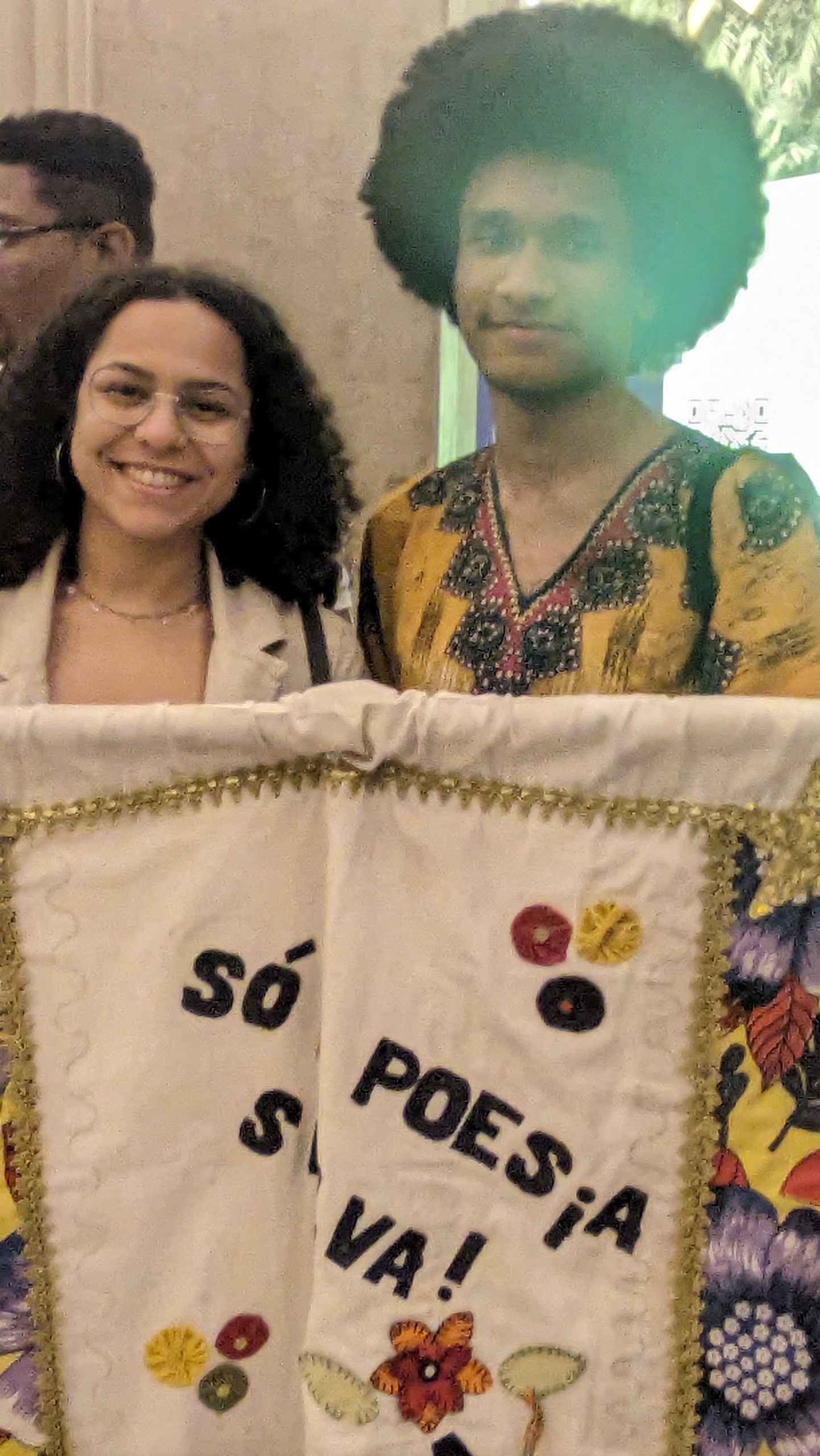 The seminar came to a poetic close. Carrying banners with slogans like “Only Poetry Can Save Us,” members of the State of Rio de Janeiro’s Social Museology Network and audience members descended the steps of the CCBB singing one of singer-songwriter Gonzaguinha’s most iconic songs. Mário Chagas led the chorus: