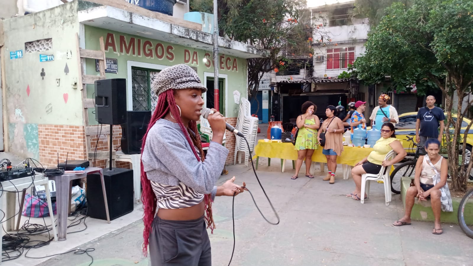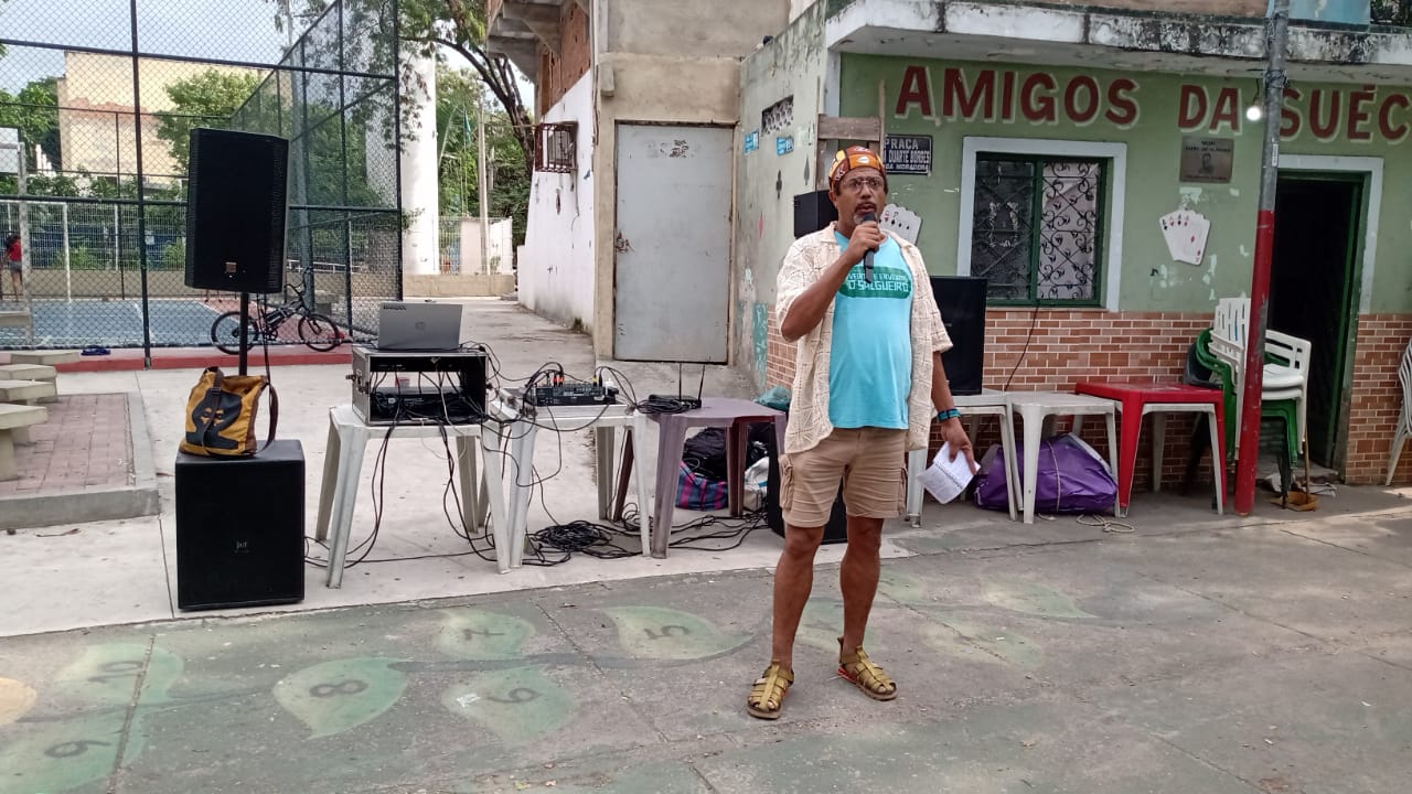 Around 60 people, not counting interested passers-by walking through the square, took part in the day’s activities. The event united environmentalists and community organizers like Severino Franco, from the Friends of Rocinha Ecological Park (APER); Neuza Nascimento, columnist for the social impact news site Lupa do Bem; Emerson Menezes, from the Salgueiro Favela Herb Growers collective; Claudia Queiroga, from the social gastronomy project Gastromotiva; Alê Castanheda, Tiririca, and Daniel Real, from the local initiative Arará Backyard; Valéria Santana, a researcher on the rights of nature; Sergio Anversa, environmental studies professor at Uniabeu; and Lenilza Leal, artisan and collector of recyclable materials—alongside Parque Arará residents. The program featured rap performances, a poetry jam, talks, and workshops.