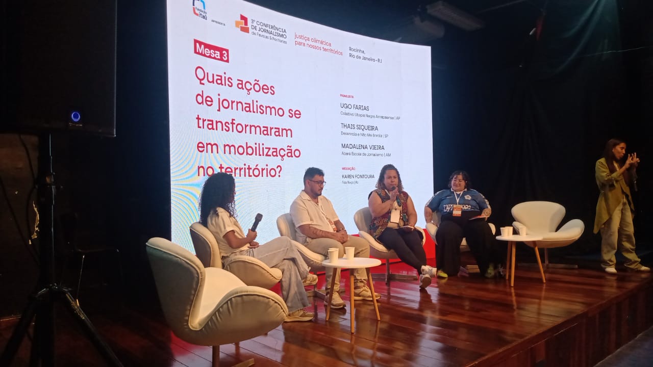 “Philanthropy is a system that operates on trust. You build trust with someone—it’s about relationships. And who has [historically] had access to philanthropy? Those who [can] spend time on [affluent] Leblon beach. They go out to dinner [together], then to a show on Flamengo Beach. There’s no complex formula—that’s how it works. Historically, this space has been extremely restricted. If we look back, the journalism organizations that received philanthropic funding have shared a very specific profile, haven’t they? They were historically white, elitist organizations. So, it’s important to highlight something interesting about this panel we’re on right now: the diversity represented here directly impacts who will receive funding. Because the moment this funding reaches our hands—people with little money, but with a commitment to our territories—[that changes the whole scenario].” — Daiene Mendes
