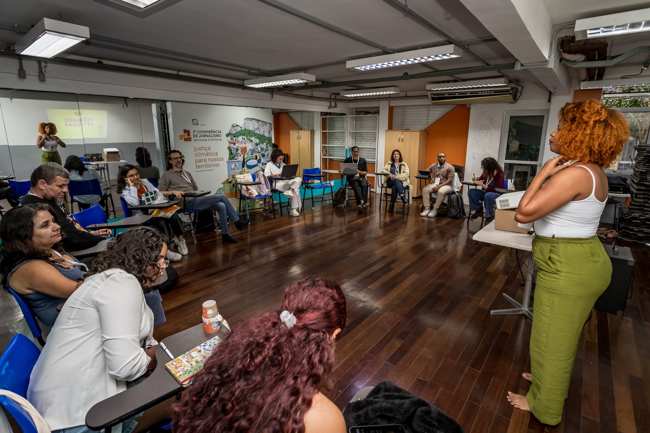 The event offered training sessions and lectures that addressed the challenges faced by community-based media, including funding, public policies, climate issues in favelas and community organizing, as well as discussions on climate justice in these communities.