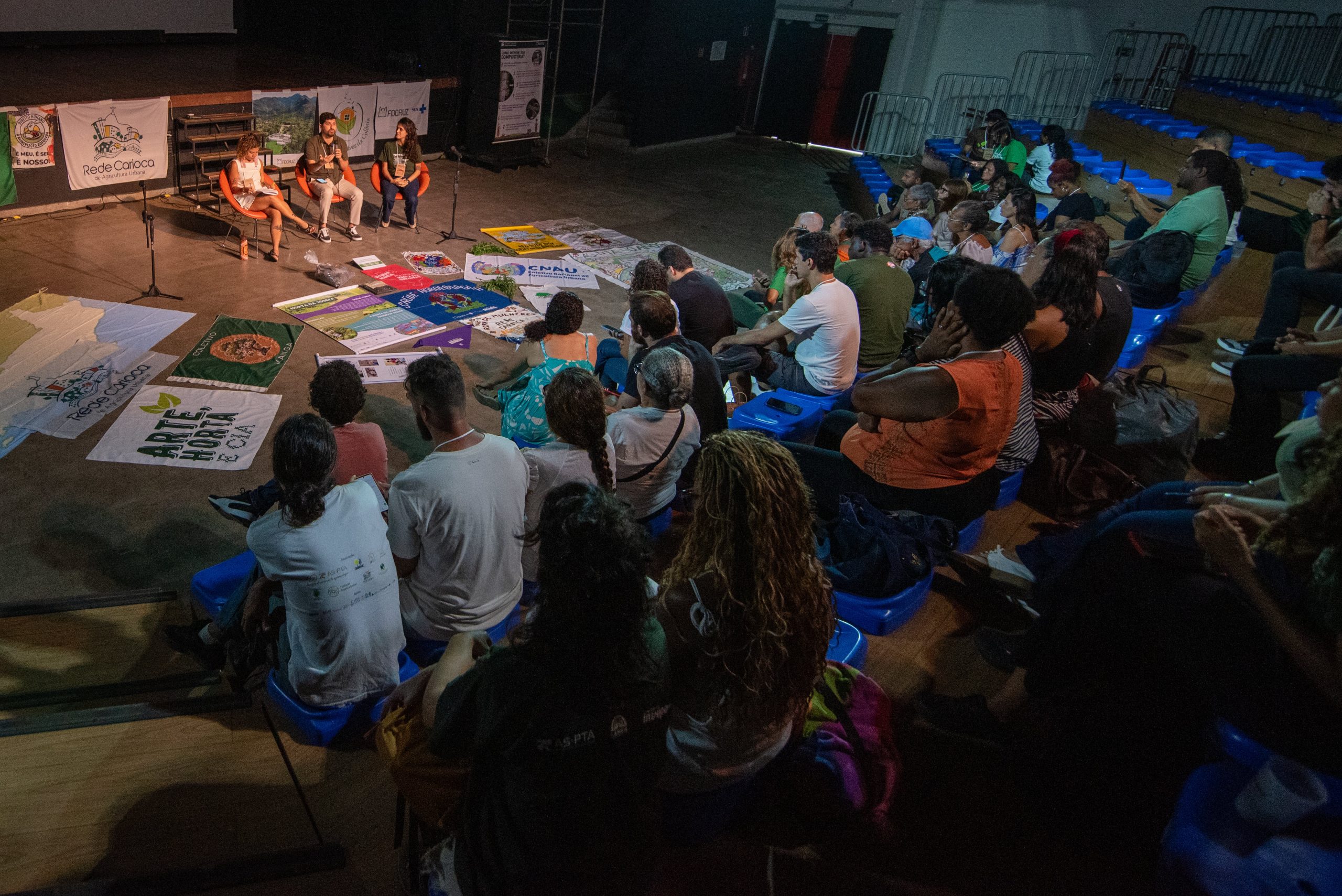 After lunch, participants from the morning event headed to Serra da Misericórdia, where they visited CEM and learned about its initiatives in composting and agroforestry. Meanwhile, at Arena Dicró, between the morning and afternoon, visitors explored the Favela Climate Memory exhibition, where they learned about residents’ memories of climate in the ten Rio favelas that created the exhibition.
