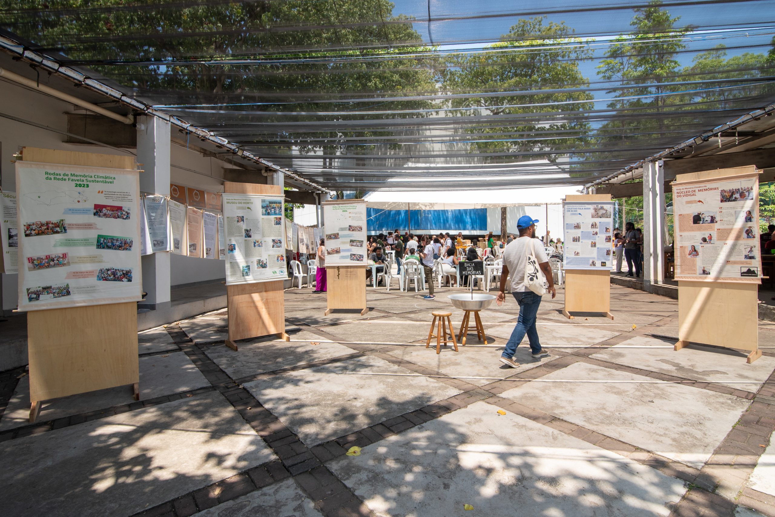 “This place [Ary Barroso Park] is important to me, as a person with a disability: I couldn’t walk or talk, so my friends used to carry me here… Participating in the Climate Memory circle here [in the park], being a resident and knowing the importance of this place… [And now having this exhibition back here,] it’s affective memory: the memory of being here and seeing this exhibition here. For me, it’s a memory of territoriality, of belonging, because [it’s moving] when you’re in a place where you grew up, that you frequented and you see all this. Going to the [exhibition launch] in Maré, participating there, seeing the whole project there as well, also [taking it there] to that favela, [we grasped] the importance of the land, of the environment, of this climate memory. Seeing [the exhibition] here is a joy, an achievement of belonging.” — Sidnei Fernandes
