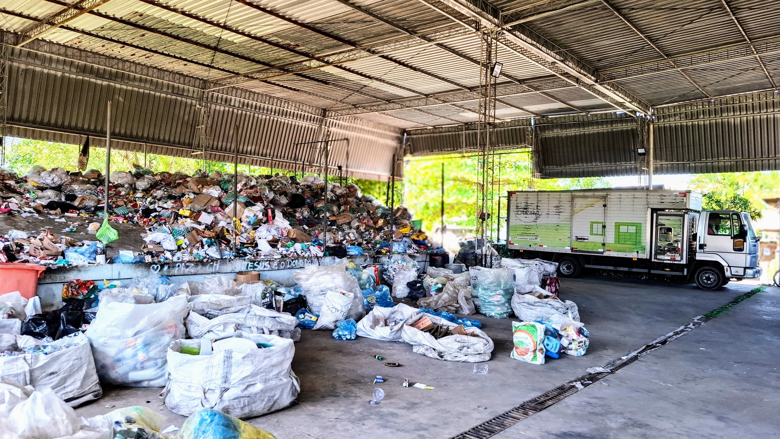 Without infrastructure or technical knowledge, the cooperative had to reinvent itself. The women realized that Coopcarmo’s operational capacity lacked almost everything: qualified personnel to manage recyclable materials, facilities equipped with proper tools, standardized storage and the ability to turn recyclables into financial gain. To address this, Father Obertal traveled to Germany and Belgium, where he connected with NGOs specializing in the creation, organization and training of recycling and agroecology initiatives in the Global South. A technical team traveled to Mesquita, and through an immersion that lasted several weeks, the group of women began their journey as part of the solidarity economy.