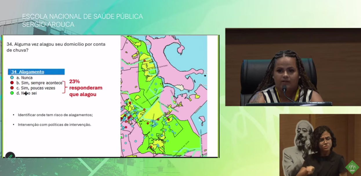 “When we asked whether the pipe supplying the home with water was at risk of coming into contact with sewage, 40% of respondents said yes. So people often experience recurring illnesses such as diarrhea and viral infections. They don’t know why—they don’t have the information that it’s because their water is being cross-contaminated with sewage. [In parallel to this] 22% of these people report that their homes flood. Recently, at the end of last year, everyone saw what happened in Complexo de Manguinhos [in Rio’s North Zone] after the heavy rains. The entire group of favelas flooded. I’m 1.5 meters tall (~4ft 11in) and the water rose above that. I was trapped with my daughter [on the street]. What is the government doing? Why does the flooding reach Avenida dos Democráticos [in a region far from the river and paved]? Where are the public works?” — Ericka Kathellin